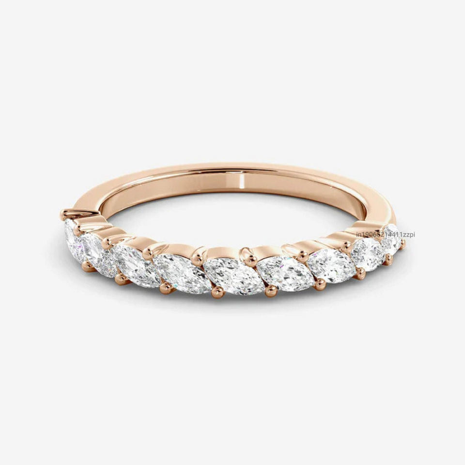 มาร์กีส์ตัดเพชรวงครึ่งชั่วนิรันดร์0.90 CT แชร์แหวนแต่งงานง่ามวงจับคู่สำหรับผู้หญิงสวมใส่ทุกวันแหวนเพชรโมอิสซาไนต์