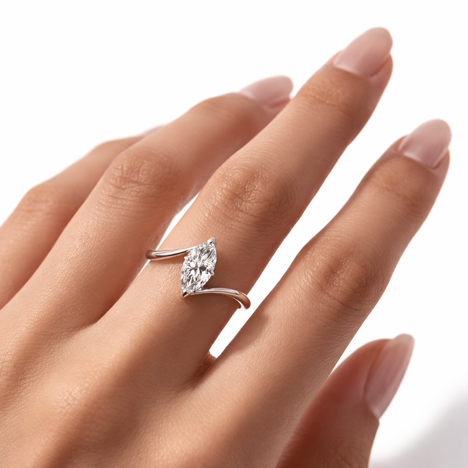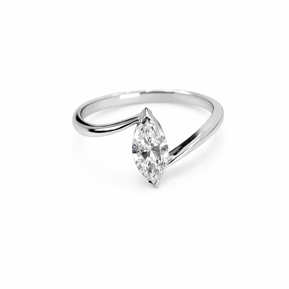วัสดุ:แหวนเพชรเม็ดเดี่ยวทรงมาร์คีส์ ทองคำขาว 14K 18K