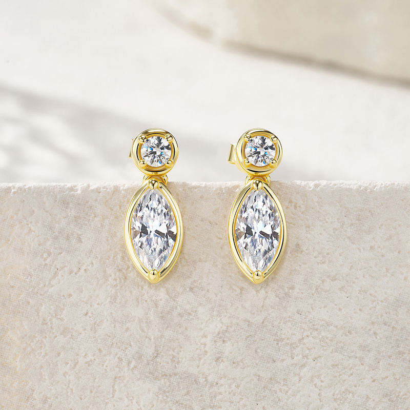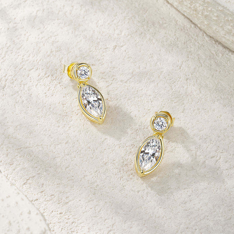 ต่างหูทรงหยดน้ำประดับเพชรโมอิสซาไนต์ทรงเรขาคณิตทันสมัย ดีไซน์สองชั้น เงินแท้ S925 สำหรับผู้หญิง เหมาะสำหรับงานแต่งงานและวันครบรอบ
