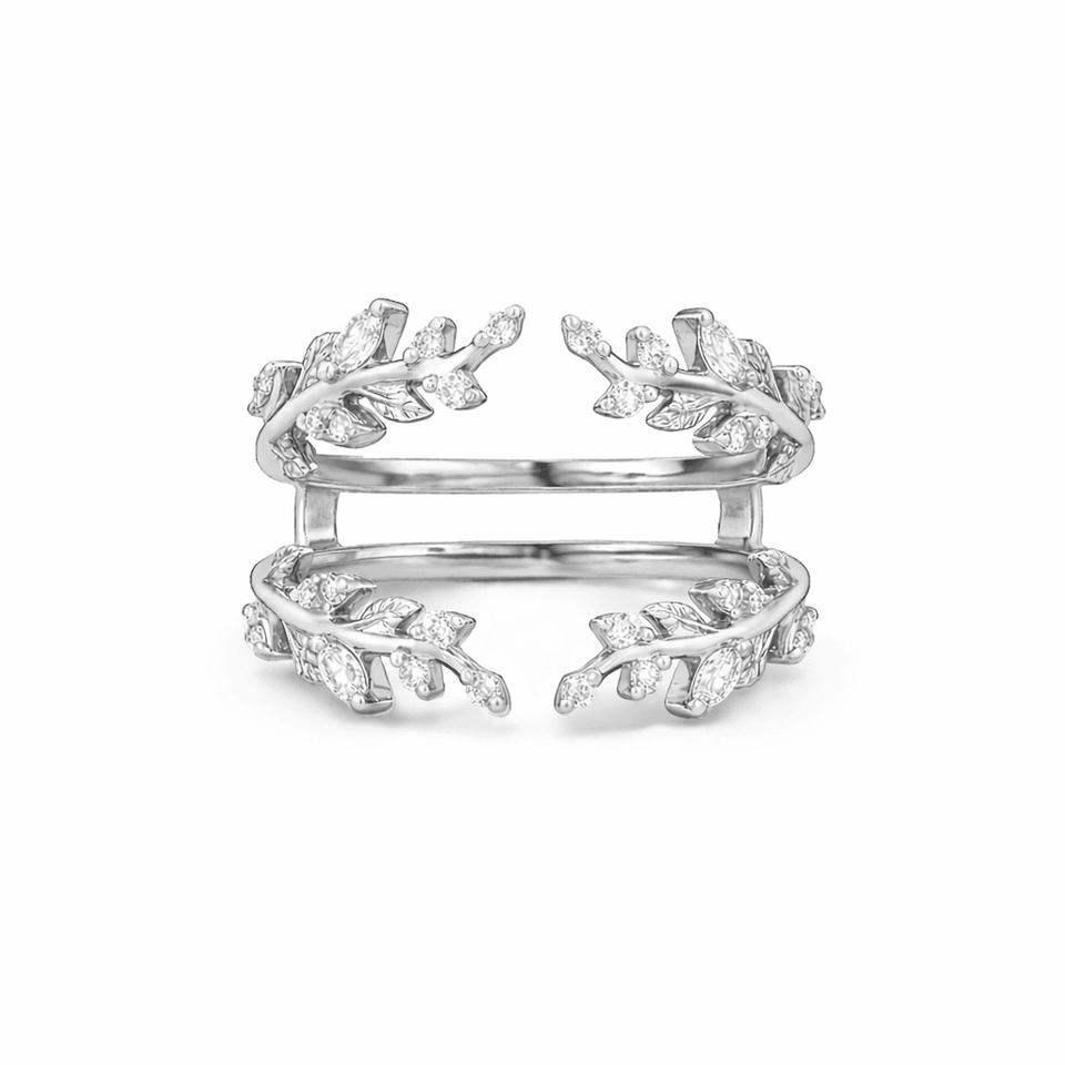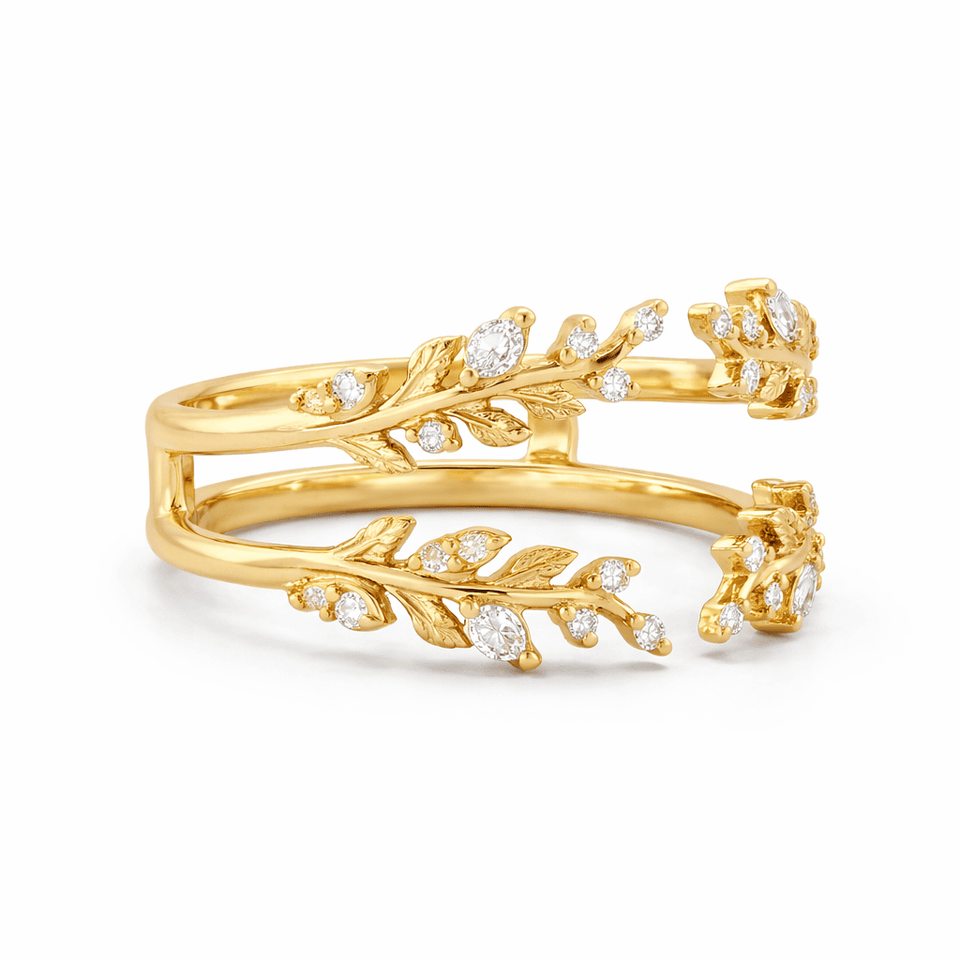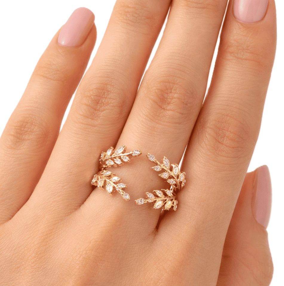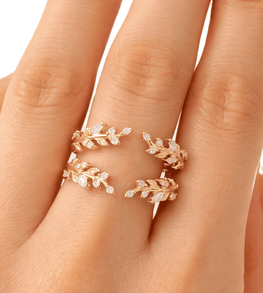ออกแบบ: แหวนคู่ ปรับได้ ดีไซน์ใบไม้ ประดับเพชร