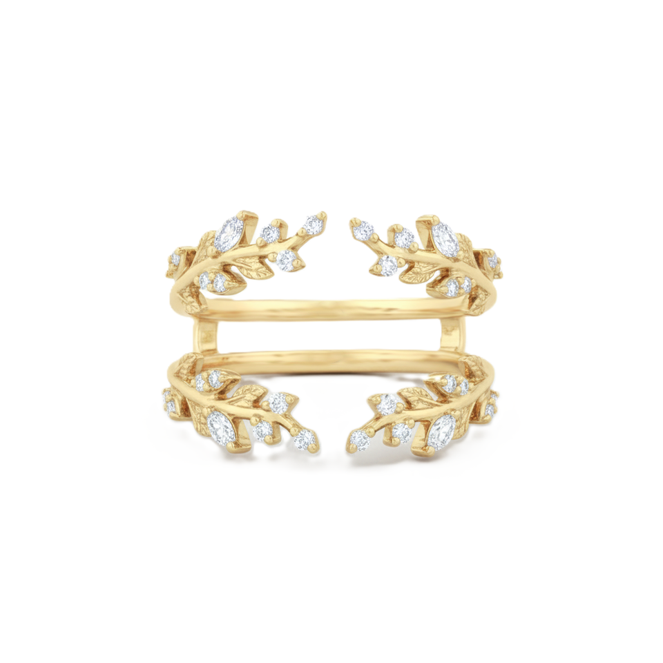 แหวนเปิดทรงใบไม้ ประดับเพชรทรงมาร์คีส์