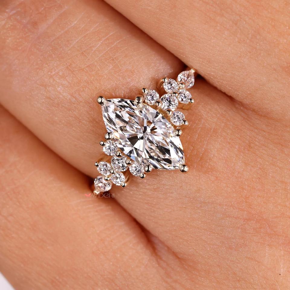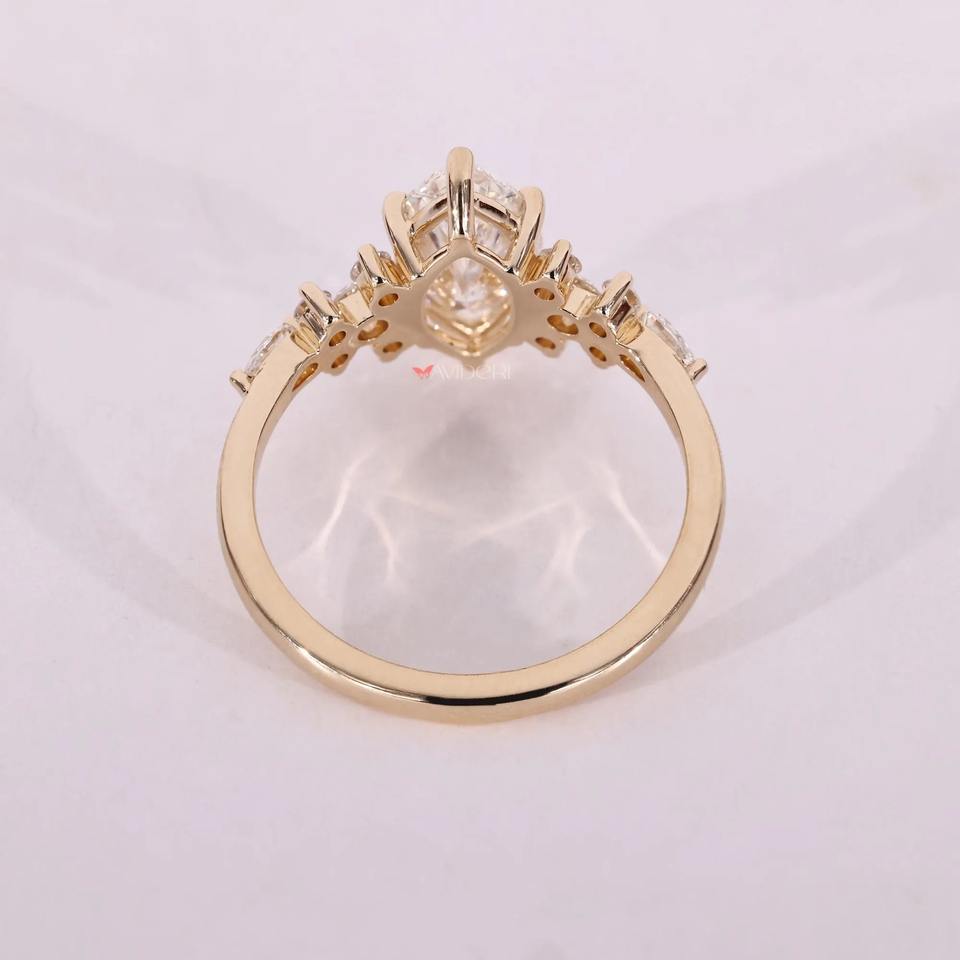 แหวนหมั้นเพชรเม็ดเดี่ยวทรงมาร์คีส์เพาะเลี้ยงในห้องปฏิบัติการ_ ดีไซน์ทองคำสไตล์ธรรมชาติ - รับรองโดย IGI น้ำหนัก 1.50 กะรัต