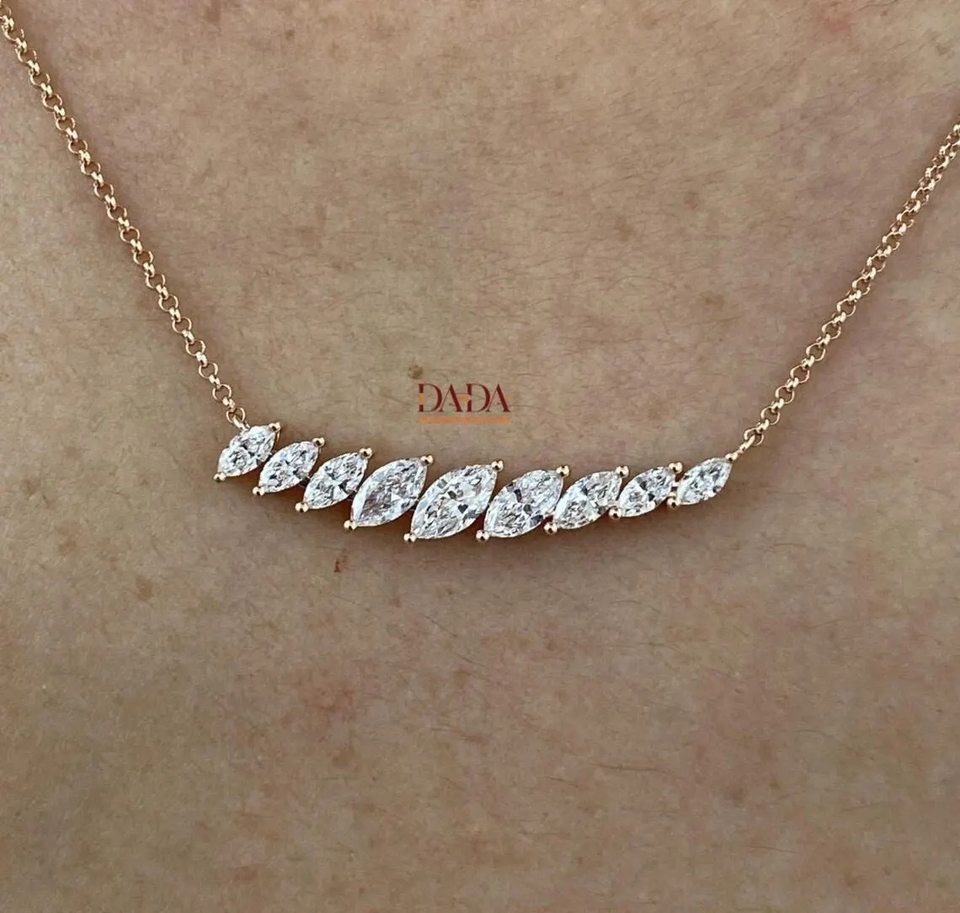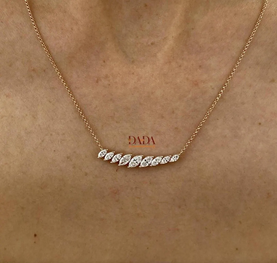 จี้เพชรทรงมาร์คีส์เพาะเลี้ยงในห้องปฏิบัติการ IGI D-E-F VVS-VS พร้อมสร้อยคอในทอง 14K โรสโกลด์ ไวท์โกลด์ และเงินสเตอร์ลิง