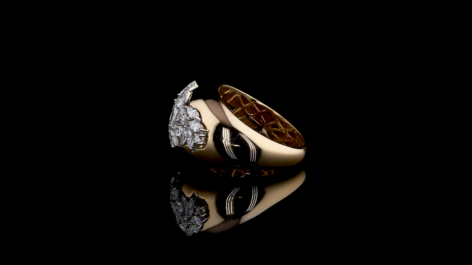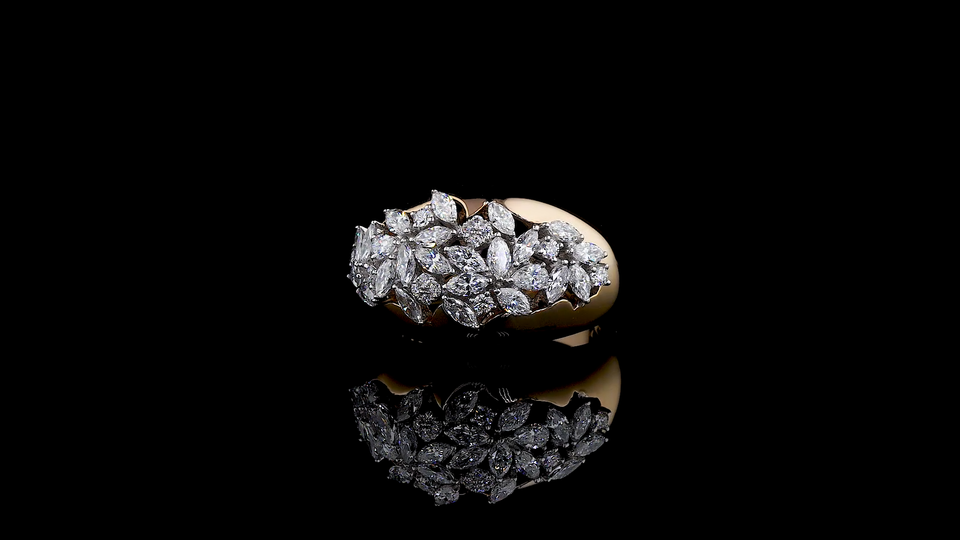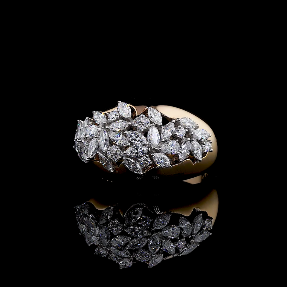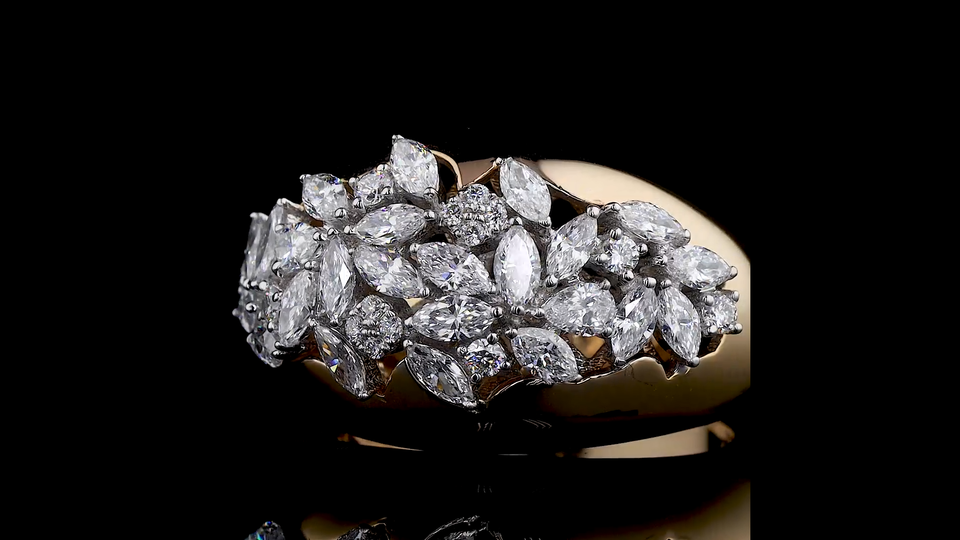 แหวนค็อกเทลเพชรทรงมาร์ควิสและทรงลูกแพร์ที่เพาะเลี้ยงในห้องปฏิบัติการ | แหวนงานเลี้ยงสุดหรูสำหรับผู้หญิง | เครื่องประดับดีไซเนอร์ชั้นดี