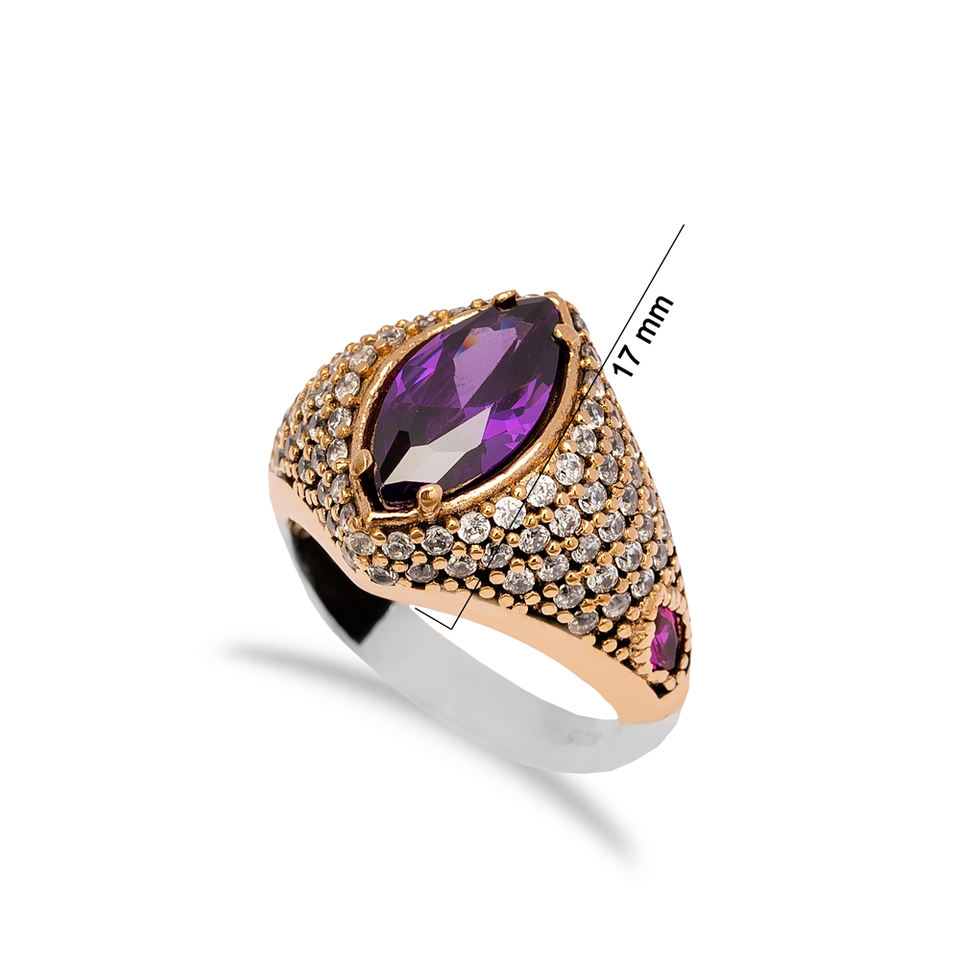 Marquise Shape อเมทิสต์หินแท้ผู้หญิงแหวนตุรกีแฮนด์เมดขายส่งเครื่องประดับเงินแท้925