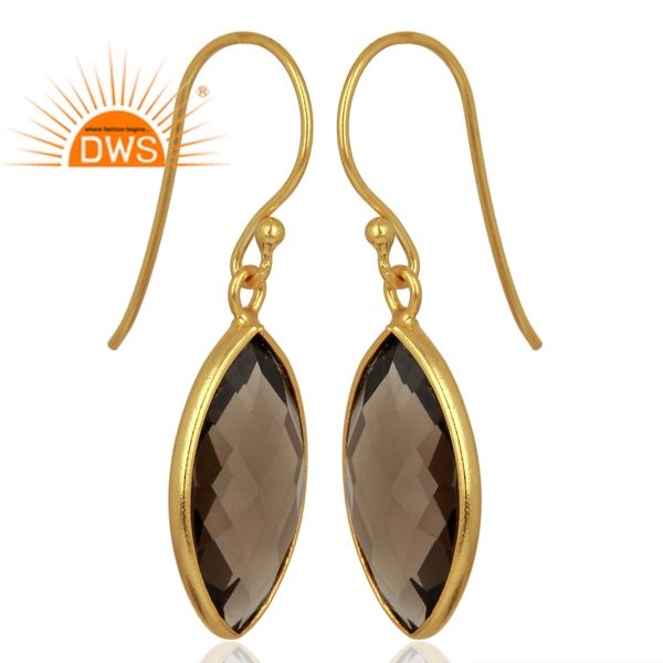Marquise Shaped Gold Plated Silver Earring Smoky Quartz Gemstone Earrings Designer Hook Wire Earring Supplier