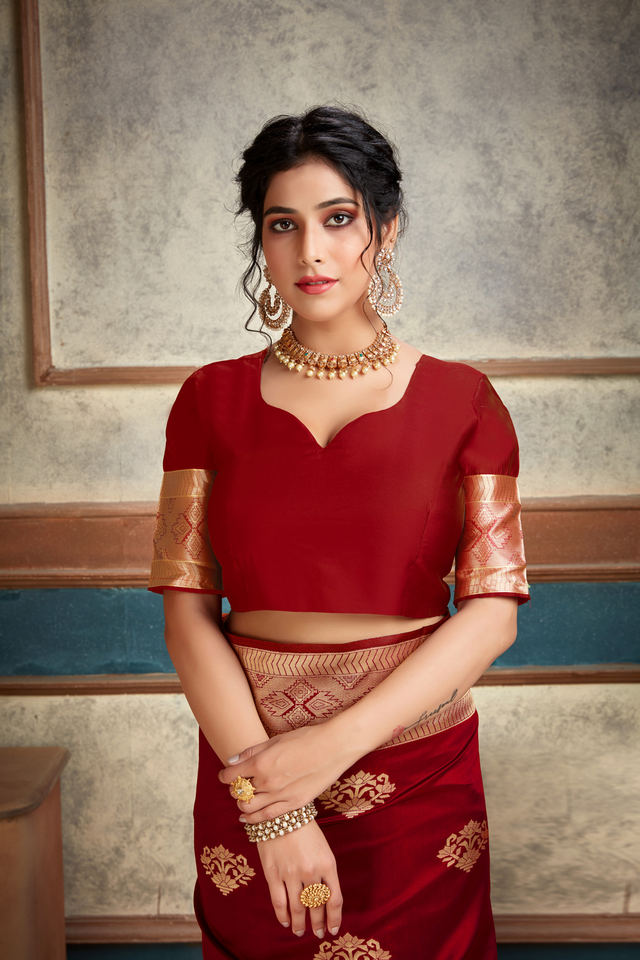 ชุดส่าหรีสีแดงสำหรับงานแต่งงานดีไซน์ใหม่เสื้อแบบไม่มีตะเข็บสำหรับผู้หญิงสไตล์อินเดีย