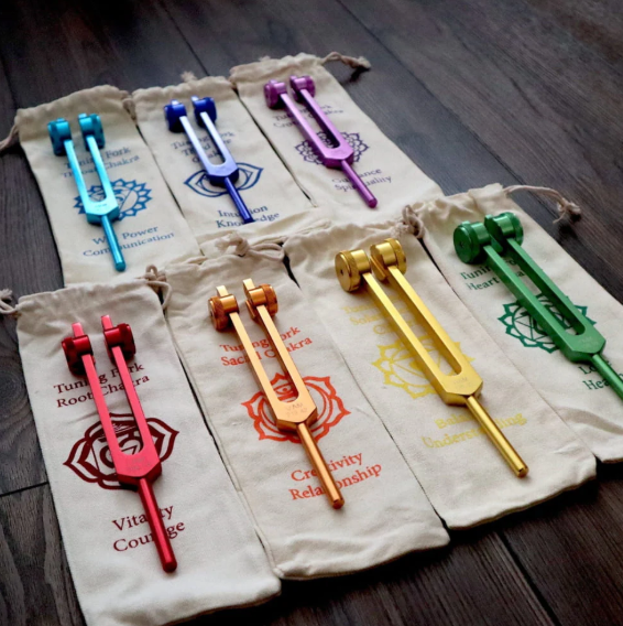 ชุดส้อมเสียงเงิน 8 ชิ้น ยี่ห้อ Mars International สำหรับการบำบัดจักระ - จาโรมนิถึงรูปร่าง