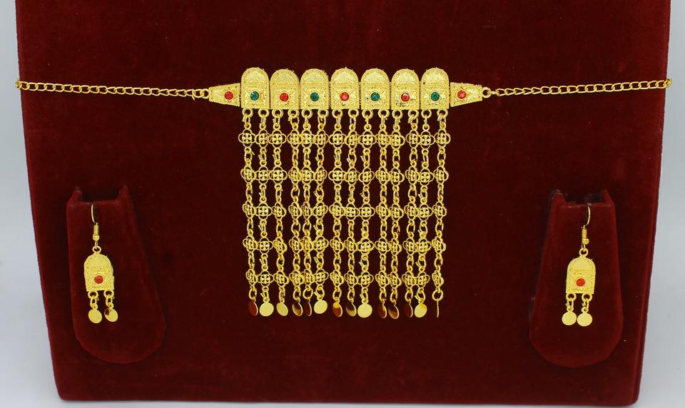 ชุดเครื่องประดับต่างหูสร้อยคอชุบทองพิเศษชุดเครื่องประดับอัญมณีอาหรับ