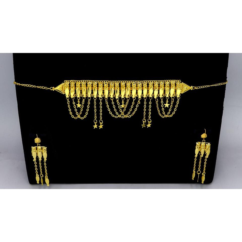 ชุดเครื่องประดับต่างหูสร้อยคอชุบทองพิเศษชุดเครื่องประดับอัญมณีอาหรับ