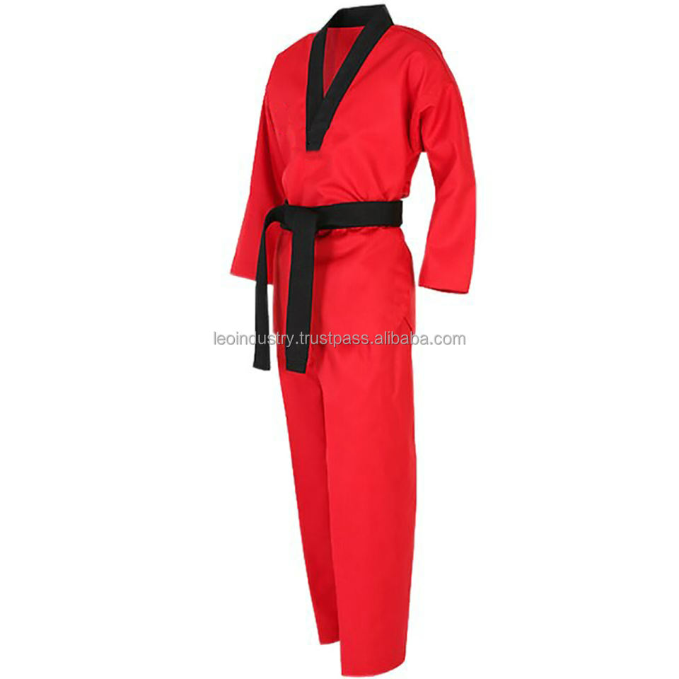 ศิลปะการต่อสู้เกาหลีขายส่งสีดำปกสีแดงราคาถูกชุดผู้ผลิตขายส่ง Kwon Wtf เทควันโดเครื่องแบบสำหรับเด็ก