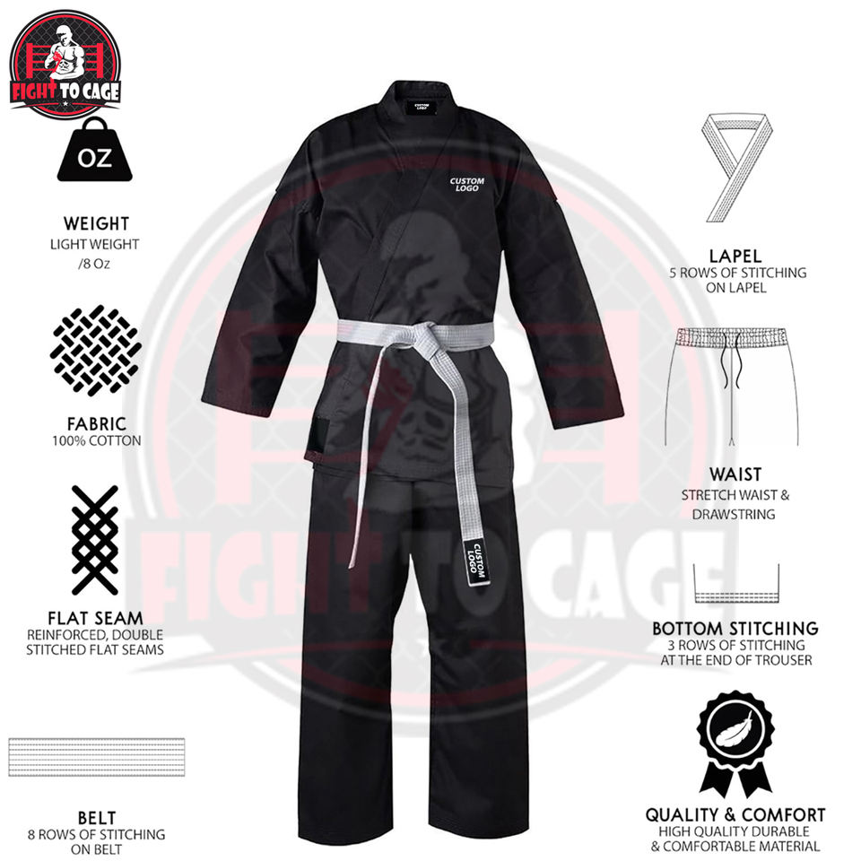 ประเภทผ้า::ผ้าสำหรับศิลปะการต่อสู้ ระบายอากาศได้ดี ทนทานต่อการฉีกขาด และดูดซับความชื้น