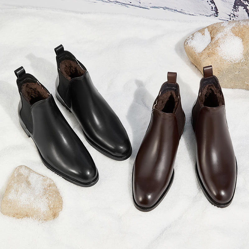 รองเท้าบูทเชลซี หนังแท้ พื้นยางหนา สวมแบบสลิปออน สไตล์อังกฤษ ลายแกะสลักด้วยมือ