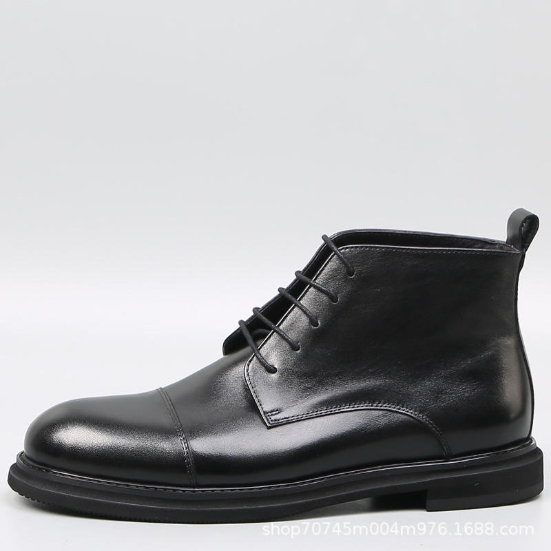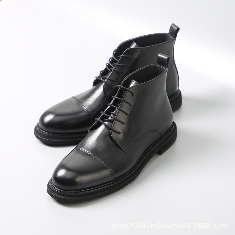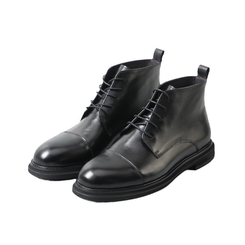 รองเท้าบูทมาร์ติน หนังวัว พื้นหนา ซิปด้านข้างหนังแท้ ลายแกะสลักสไตล์อังกฤษ