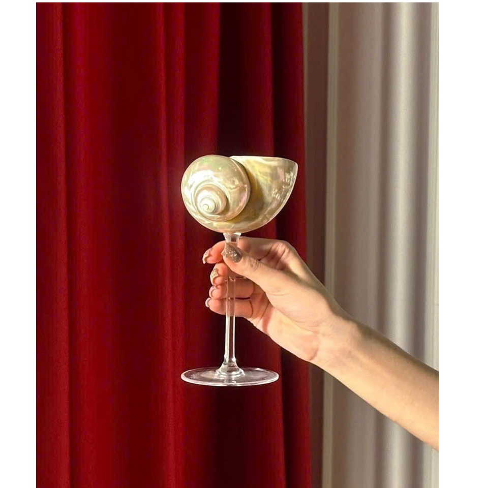 แก้วมาร์ตินี่ถ้วยเปลือกหอยขัดเงาแฮนด์เมดแก้วสำหรับบาร์ชายฝั่งและงานแต่งงาน