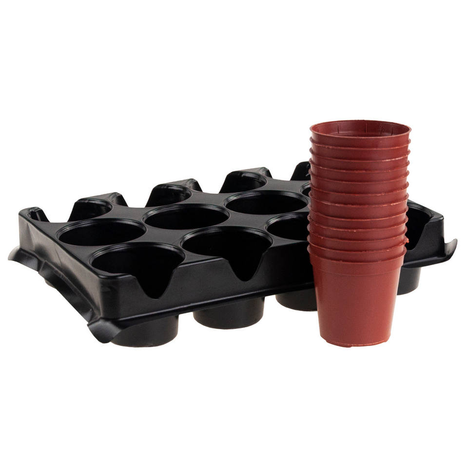 ถาดเพาะกล้าแบบหลายช่อง Martom TG67324 พร้อมฝาปิด 12 แผ่นพลาสติกทรงสี่เหลี่ยมผืนผ้า มีรูระบายน้ำ พร้อมพาเลท