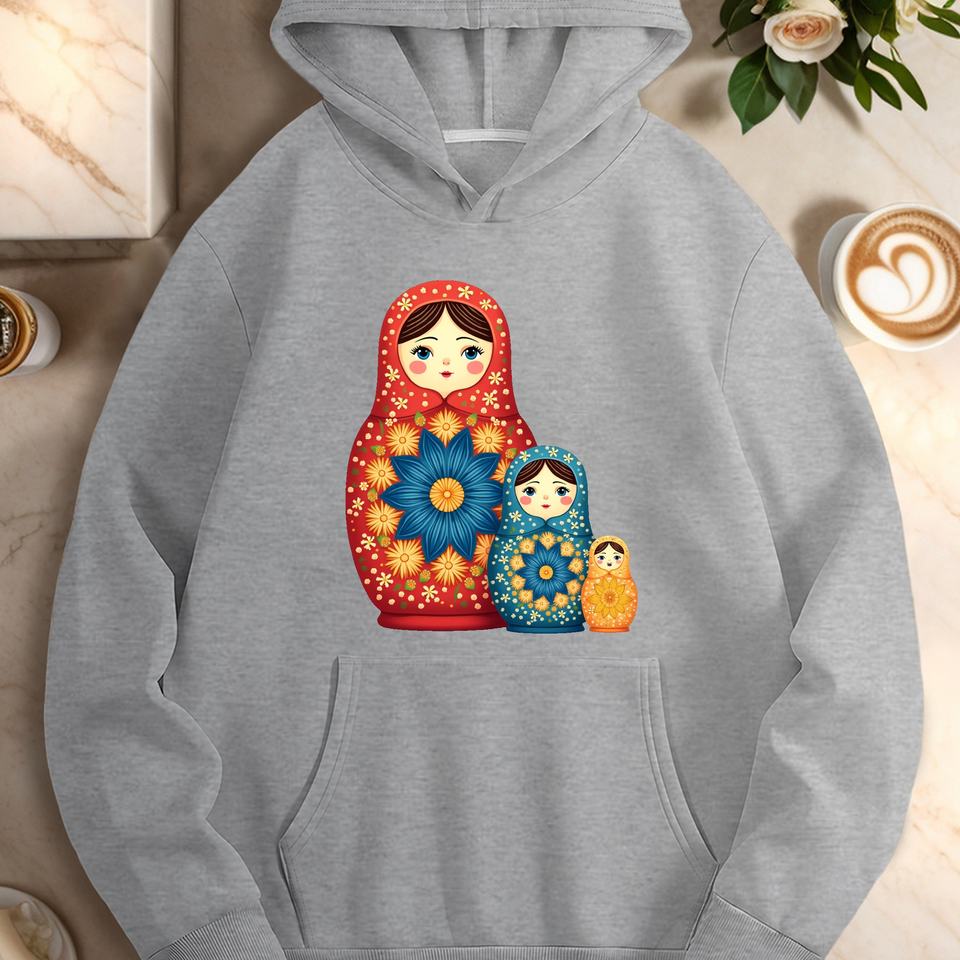 เสื้อฮู้ดลำลองของผู้หญิงตุ๊กตา martrium Matryoshka มีรายละเอียดดอกไม้