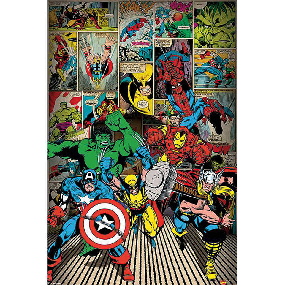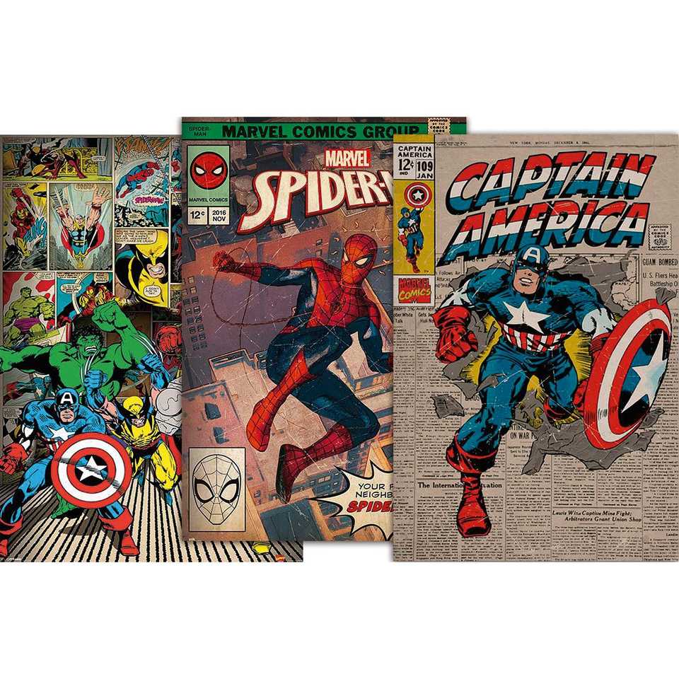 ชุดโปสเตอร์มาร์เวลสไตล์เรโทรสำหรับตกแต่งผนัง