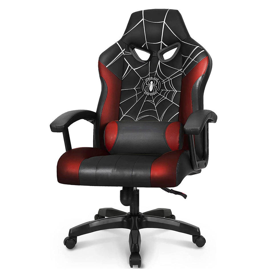 MARVEL เก้าอี้เล่นเกมหลังสไปเดอร์แมน, เก้าอี้ทำงานหมุนได้สำหรับนักแข่งรถหนัง PU เหมาะกับสรีระ