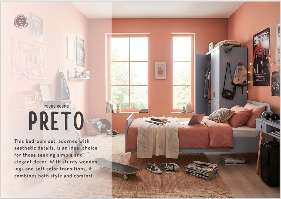 ราคาสุดคุ้ม ห้องวัยรุ่นตกแต่งเรียบง่ายแต่หรูหรา เตียงไม้โมเดิร์น PRETO