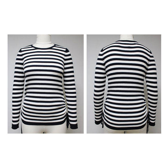 เสื้อไหมพรมวิสโคสผสมไนลอนลายทาง คอโอ แขนยาว คุณภาพเยี่ยม เกรด 12GG สำหรับผู้หญิง