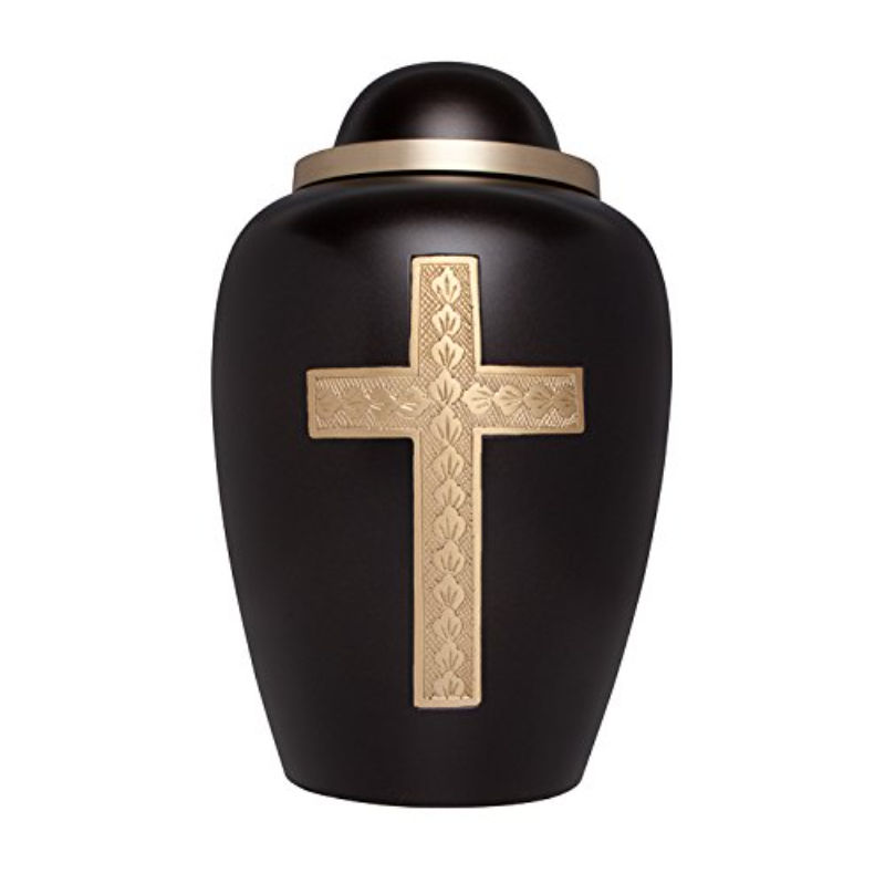 Marvelous Design American Style Eco-Friendly Customizable Cremation Urn with Cross Inlay Black Elegant Adult Memorial Ashes Urn