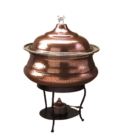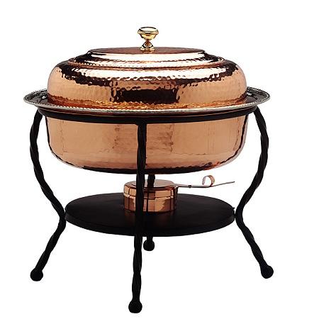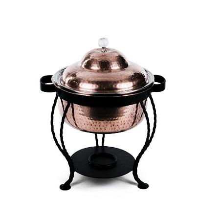 จานอุ่นอาหารพร้อมขาตั้งเหล็กรูปวงรีทำจากทองแดงดีไซน์มหัศจรรย์สำหรับอุ่นอาหาร