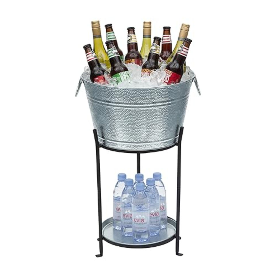ถังแช่เครื่องดื่มรูปวงรีโลหะชุบสังกะสี ดีไซน์สวยงาม สำหรับปาร์ตี้ เบียร์ ไวน์ งานเลี้ยงกลางแจ้ง ราคาสุดคุ้ม