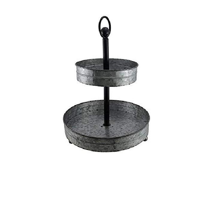 ถาดเสิร์ฟโลหะชุบสังกะสี 2 ชั้น ดีไซน์สวยงาม สำหรับตกแต่งครัวสไตล์คันทรี่ฟาร์มเฮาส์ และงานอีเว้นท์ ในราคาถูกที่สุด