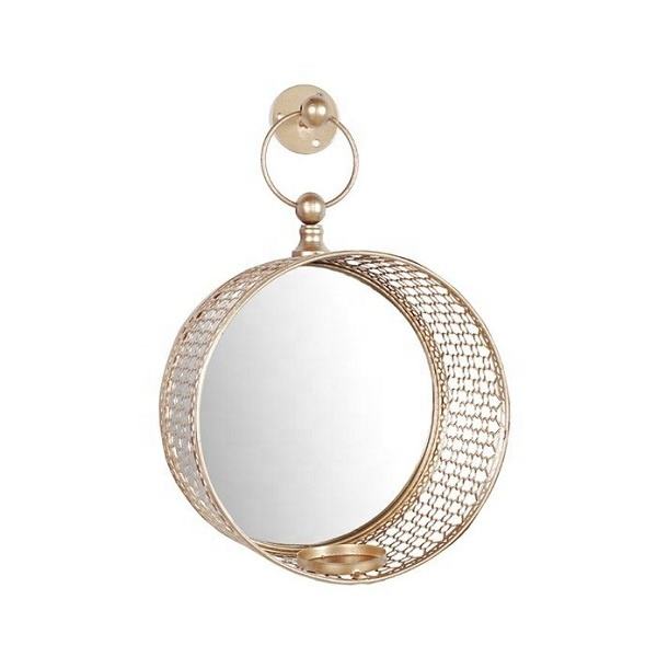 เชิงเทียนแขวนผนังรูปทรงกลมสีทองเชิงเทียนตกแต่งด้วยโลหะและแก้วดีไซน์สุดมหัศจรรย์