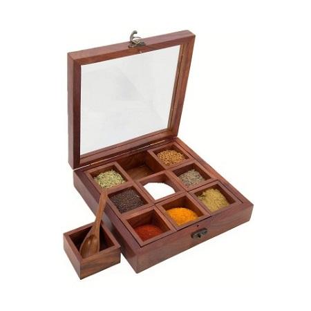 กล่องเก็บเครื่องเทศทำจากไม้ทรงกลม Masala Dabba สำหรับบ้านโรงแรมและร้านอาหารดีไซน์ล่าสุด