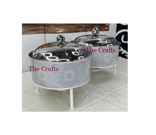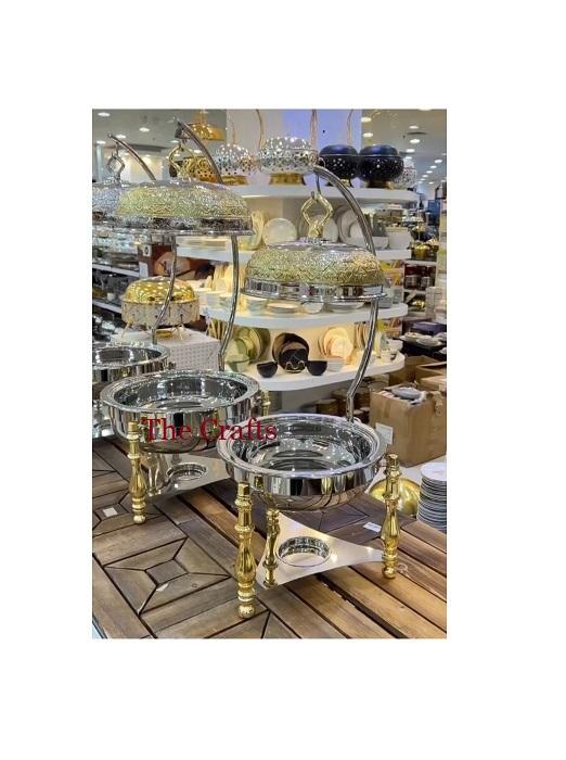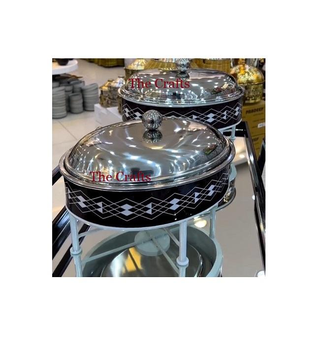 ถาดอุ่นอาหารสแตนเลสดีไซน์สวยงาม พร้อมขาตั้งเหล็ก สำหรับใช้ในบ้านและร้านอาหาร