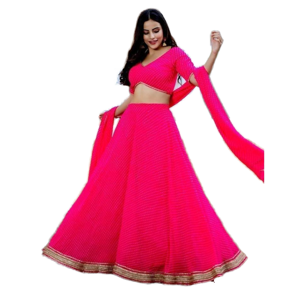 Laoheriya สีชมพูมหัศจรรย์พิมพ์ georgette ออกแบบ lehenga choli สำหรับตกแต่งงานปาร์ตี้