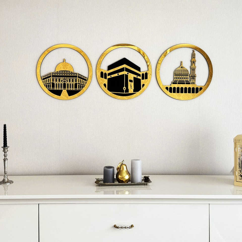 Masjid Al-Haram ศิลปะผนังอิสลาม Kaaba masjid An-nabawi masjid Al aqsa islamic สำหรับตกแต่งบ้าน-37.5*30cm