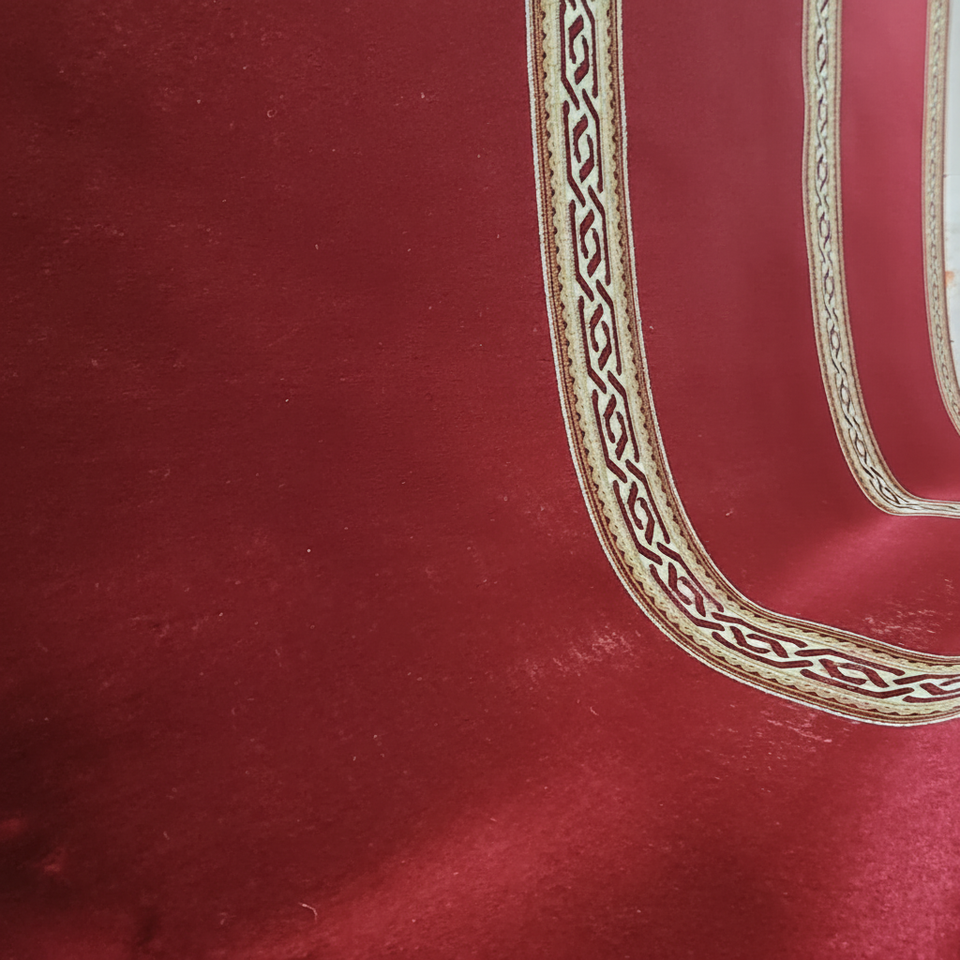 พรมปูพื้นลายดอกไม้ทันสมัยสำหรับละหมาดในมัสยิด ขนสูง นุ่มสบาย ด้านหลังทำจากปอกระเจา ผลิตจากโพลีเอสเตอร์ ผลิตที่เมืองกาซิอันเตป ประเทศตุรกี เหมาะสำหรับใช้ในห้องนั่งเล่นที่บ้าน
