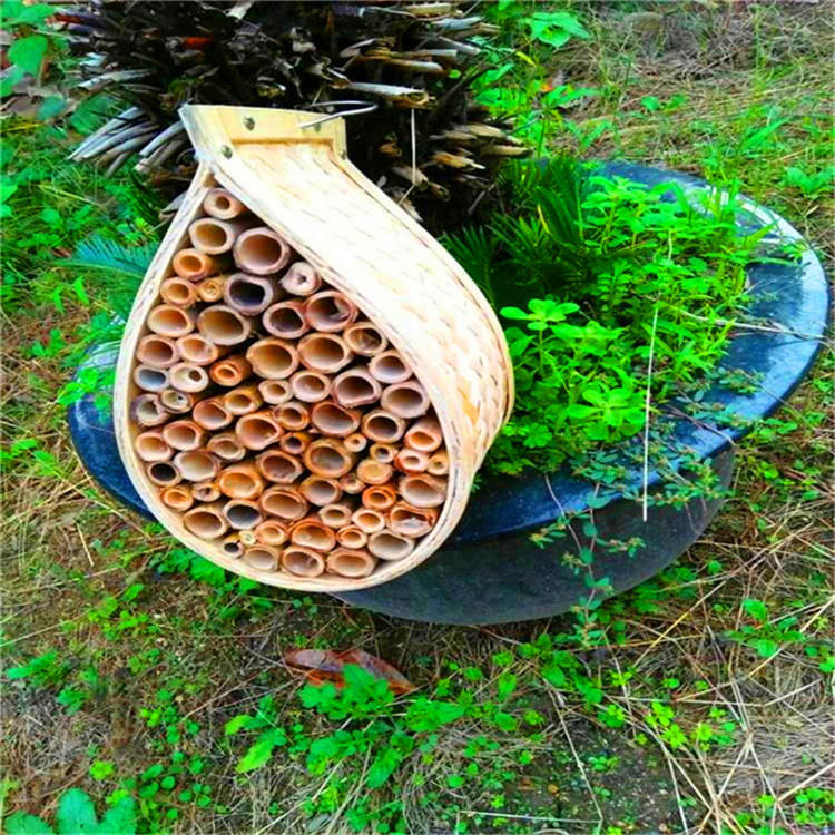 บ้านผึ้งแบบแขวนทำมือจากไม้ไผ่ธรรมชาติ เป็นมิตรกับสิ่งแวดล้อม ปลอดภัยสำหรับผึ้งและสัตว์ป่า