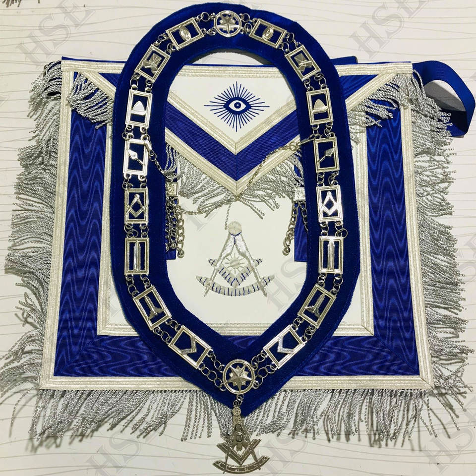 Masonic ผ้ากันเปื้อน,เอี๊ยมที่ผ่านมา Master Masonic Regalia Blue House พร้อมปลอกคอผ้ากันเปื้อนคุณภาพสูง