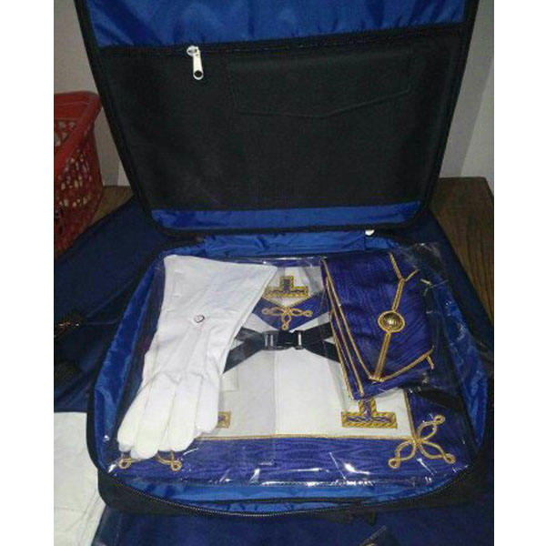 กระเป๋าใส่ผ้ากันเปื้อนแบบนุ่มสำหรับมาสเตอร์เมสันสีดำของสมาคมฟรีเมสัน รุ่นบลูโลจ MM/WM ระดับจังหวัด (ขนาด 16/18) พร้อมลายปักสี่เหลี่ยมและวงเวียน G อย่างหรูหรา