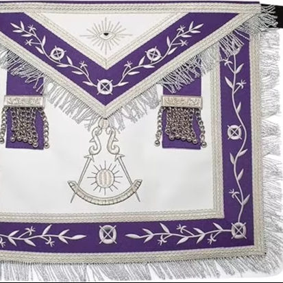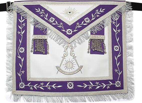ผ้ากันเปื้อนพิธีกรรมเมสัน บลู โลจ สำหรับผู้เชี่ยวชาญ (ทำจากหนังเทียม พร้อมริบบิ้นสีม่วง ปักด้วยเครื่องจักร)