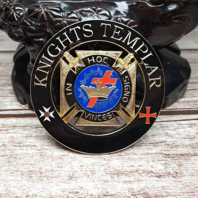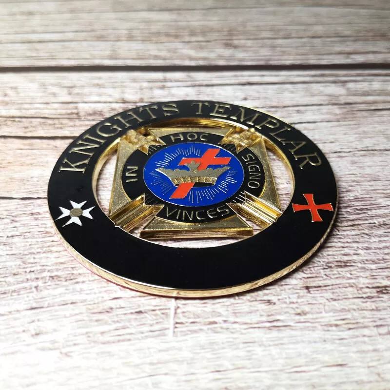 ตราสัญลักษณ์รถ Mason Freemason อัศวินเทมพลาร์ขนาด3นิ้วสัญลักษณ์ของขวัญเครื่องราชกกุธภัณฑ์ป้ายเข็มกลัดติดปกเสื้อแบบสั่งทำสำหรับพิธีการ