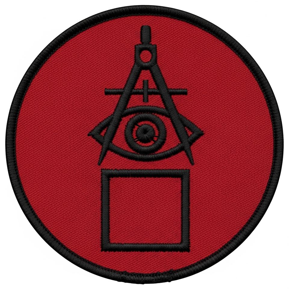 ตราปักลายวงเวียนและสี่เหลี่ยมจัตุรัสของสมาคมเมสัน สีแดง ผ้าทวิลล์ ตราสัญลักษณ์ฟรีเมสัน ตราประดับสำหรับเครื่องแบบพิธีกรรม ปักติดเสื้อผ้า