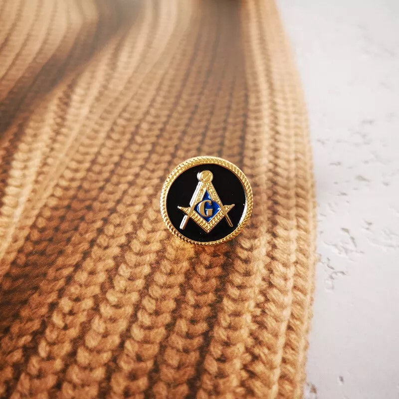 เข็มกลัดคอเสื้อรูปเมสัน3D โลหะผสมสังกะสีสีดำทรงกลมเครื่องราชกกุธภัณฑ์สำหรับพิธีการ