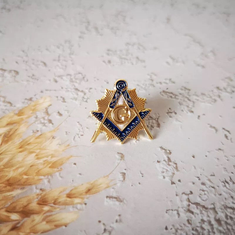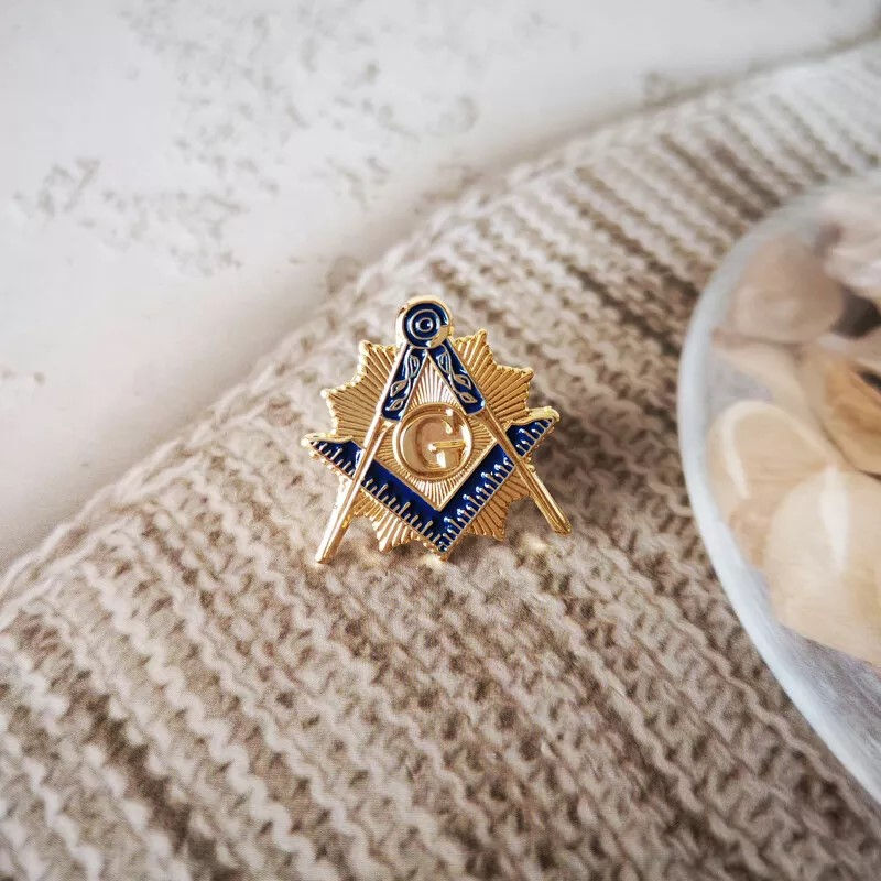 เข็มกลัดคอเสื้อคอเสื้อรูปเพชรเมสันฟรีเมสันเข็มทิศสีฟ้าและตาราง G เครื่องราชกกุธภัณฑ์ที่กำหนดเองได้2025ใหม่เอี่ยม