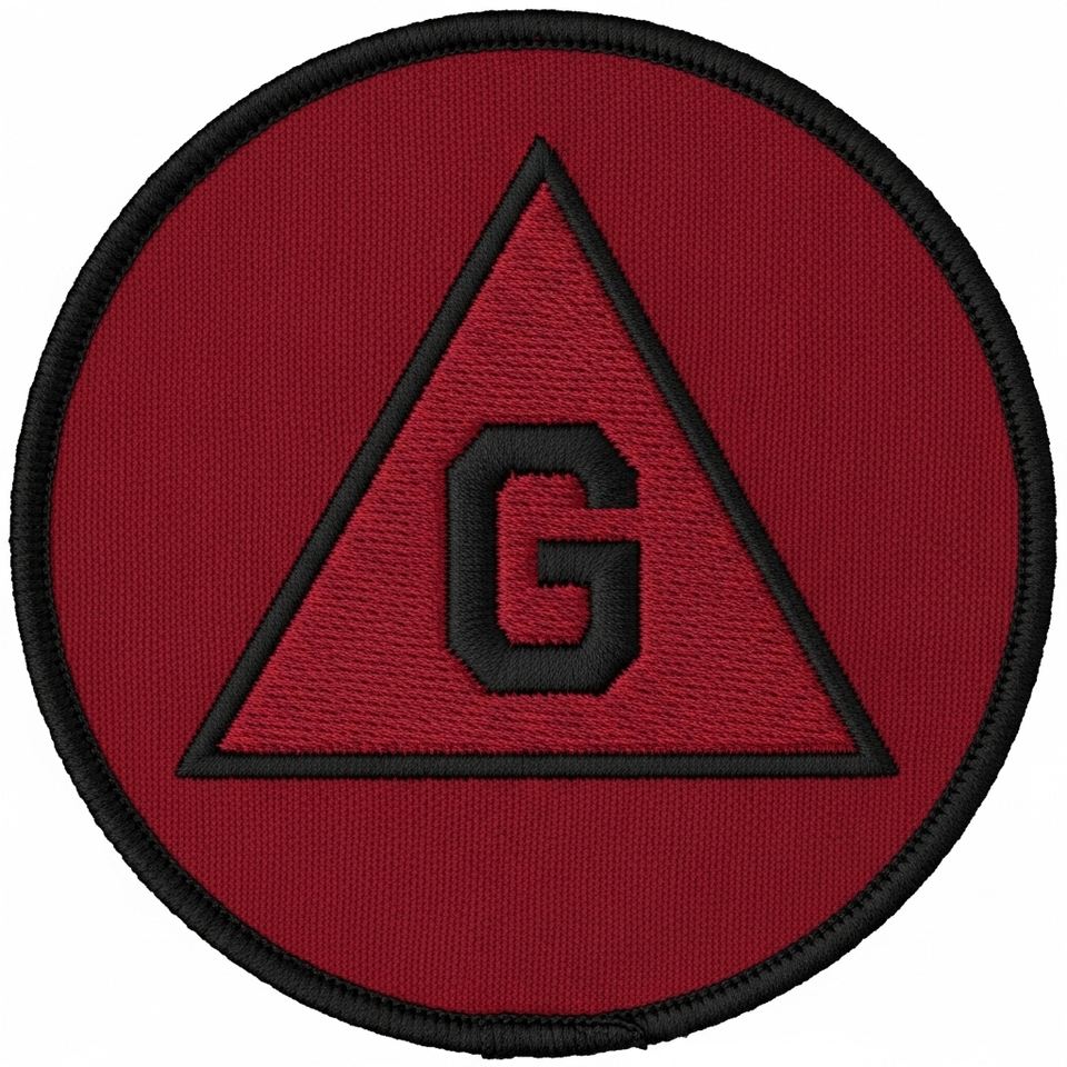 ตราสัญลักษณ์สามเหลี่ยมตัวอักษร G ของสมาคมเมสัน สีแดงมารูน ปักลาย ตราสัญลักษณ์ฟรีเมสัน สำหรับเครื่องแบบพิธีกรรม แบบเย็บติด
