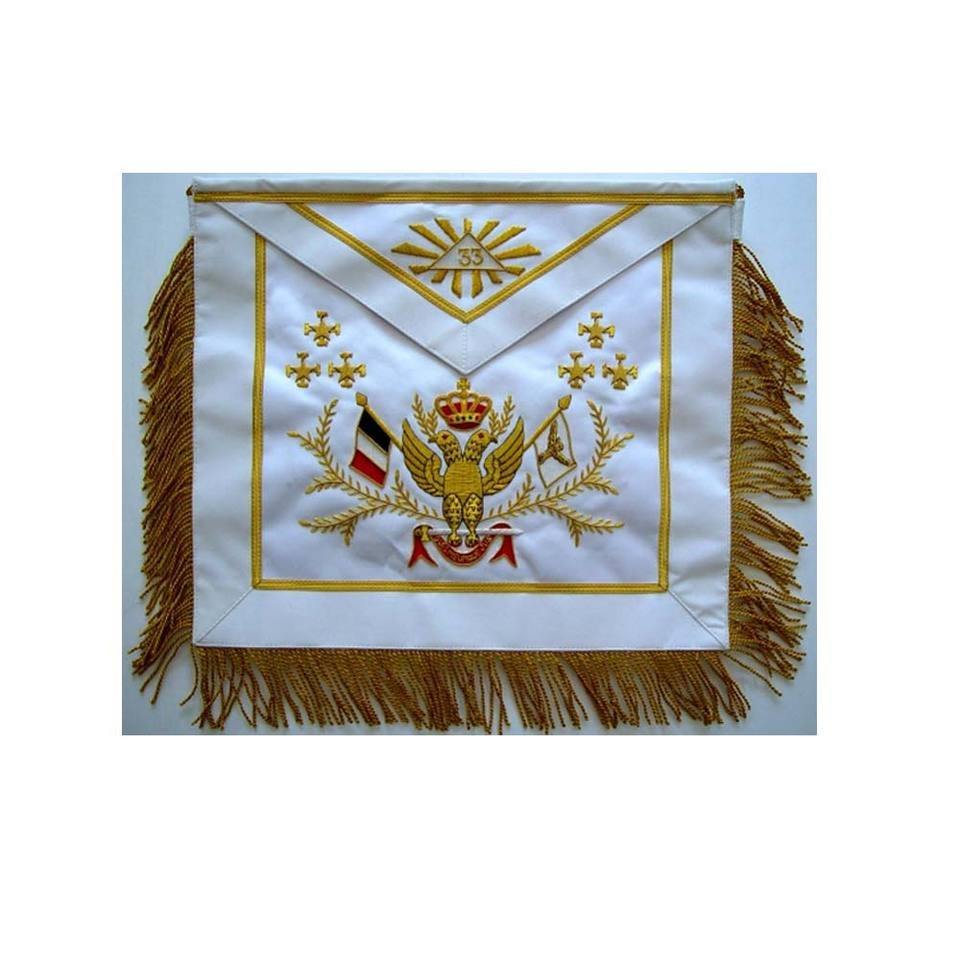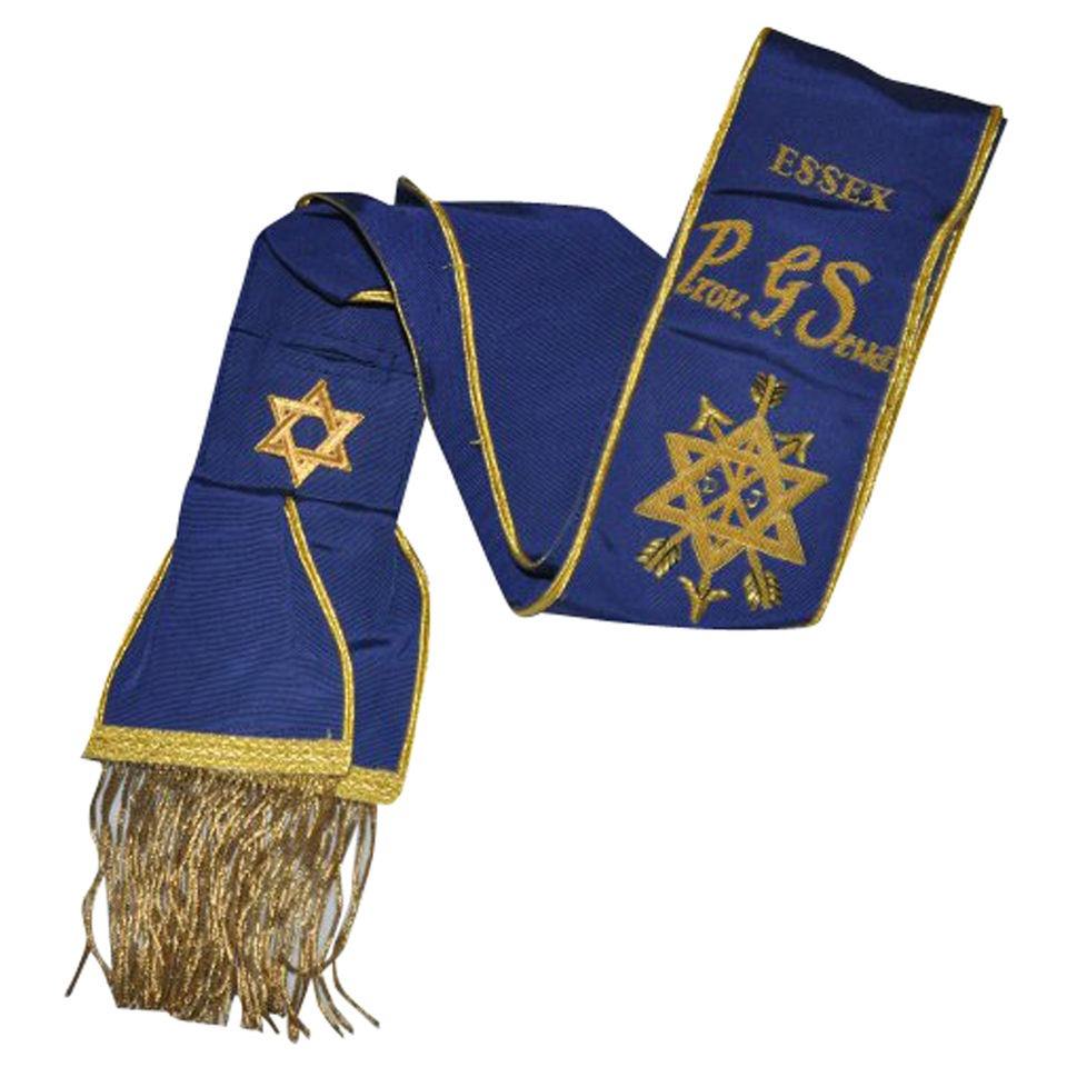 ผ้ากันเปื้อนต้นแบบ Masonic Lodge ปัก3D ปกสีฟ้าตกแต่งด้วยลูกไม้ปรับขนาดและป้ายสำหรับ mm masons