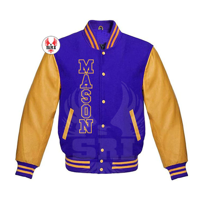 เสื้อแจ็คเก็ตเมสันแบบ Letterman สำหรับอาจารย์ผู้เชี่ยวชาญ แบบสั่งทำพิเศษ | เสื้อแจ็คเก็ตวาร์ซิตี้แขนหนังตัวเสื้อทำจากผ้าขนสัตว์พร้อมเครื่องประดับมาสัน