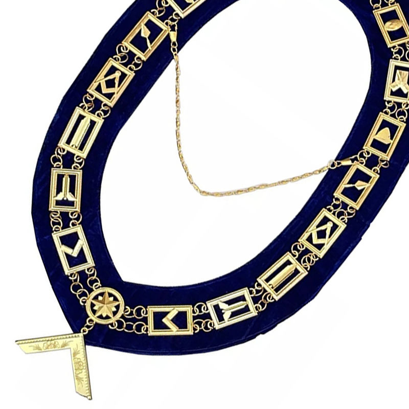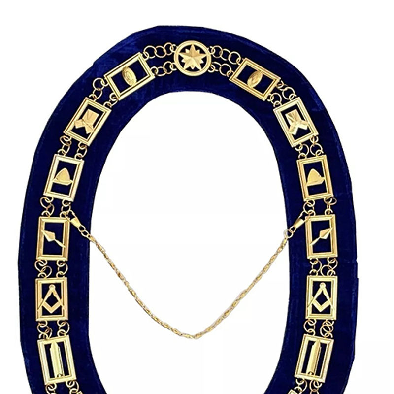 สร้อยคอทองคำสำหรับนายกสมาคมเมสัน บลู โลจ พร้อมจี้ประดับอัญมณี ผ้าคุณภาพสูงพร้อมสายคล้องคอ