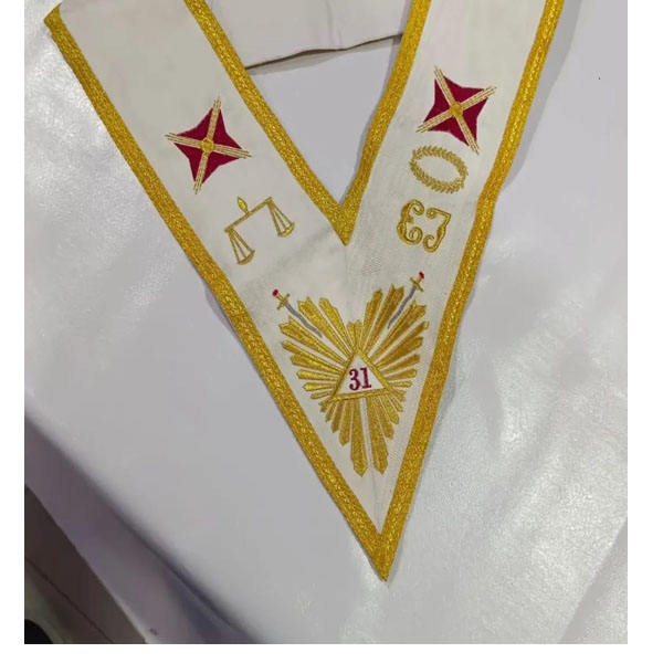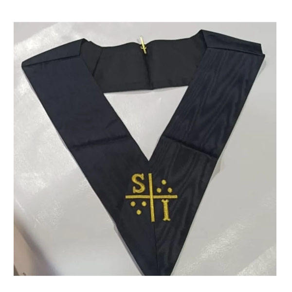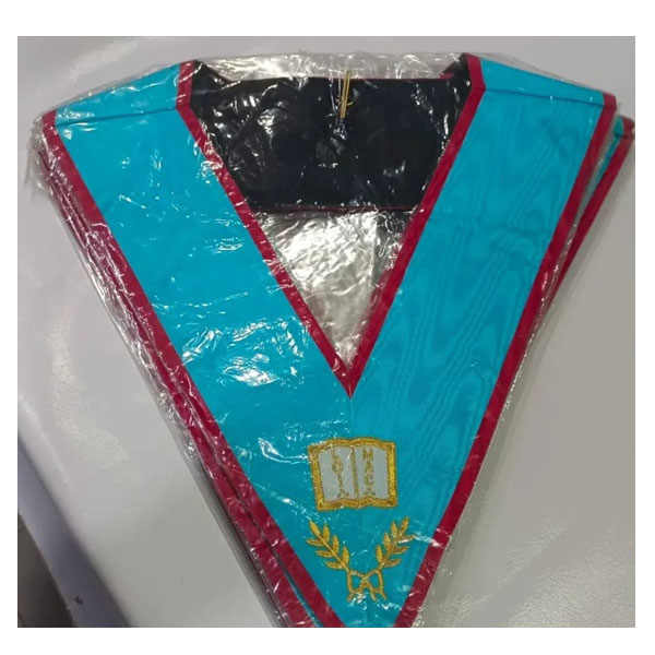 ปลอกคอพิธีกรรมเมมฟิส มิสไรม์ แบบฝรั่งเศส สีฟ้าลายมัวร์ สำหรับพิธีกรรมสกอตแลนด์ ระดับที่ 4 มีโลโก้และแบบดีไซน์ให้เลือก ปี 2026