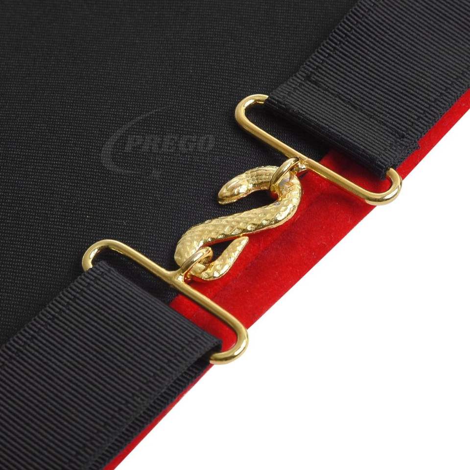 ผ้ากันเปื้อนหนังสำหรับพระสงฆ์ยศสูงแห่งราชอาณาจักรแบบมาซอนิก พร้อมลูกไม้ปักลายวินเทจ แถบข้างกำมะหยี่สีแดง