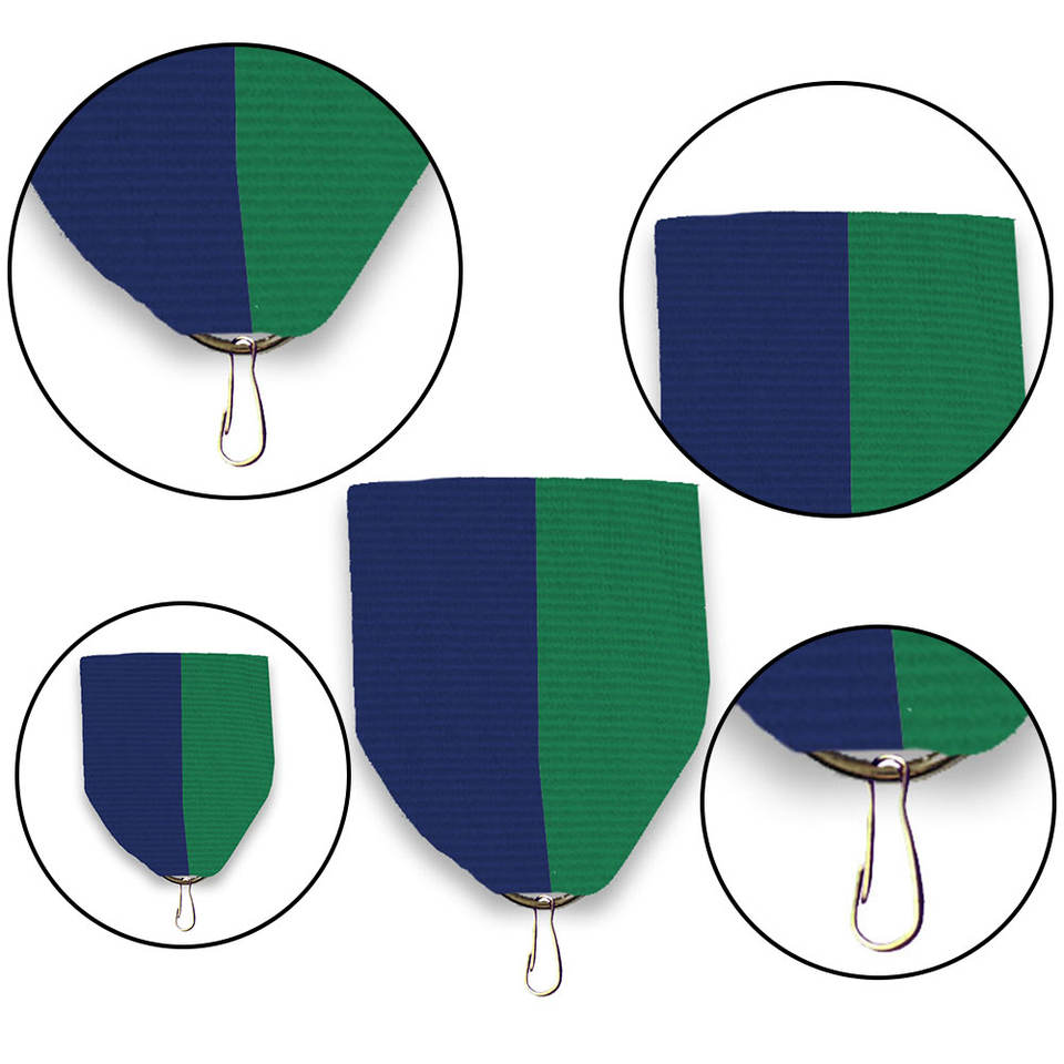 ริบบิ้นตกแต่งด้วยเข็มกลัดสีม่วงสีทองและสีเขียว